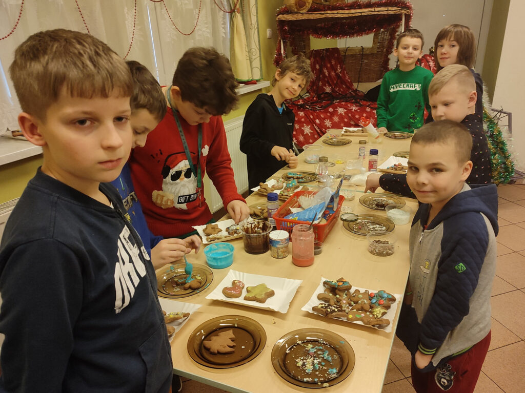 W grudniu mieliśmy niejedną okazję, aby spędzić wspólnie czas podczas zajęć kulinarnych. Z okazji zbliżających się świąt Bożego Narodzenia przygotowywaliśmy razem pierniczki. Własnoręcznie przygotowanymi smakołykami dzieci mogły później podzielić się podczas rodzinnych spotkań przy świątecznym stole.