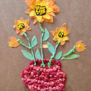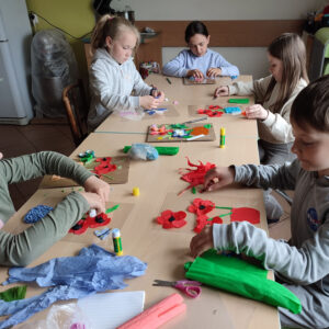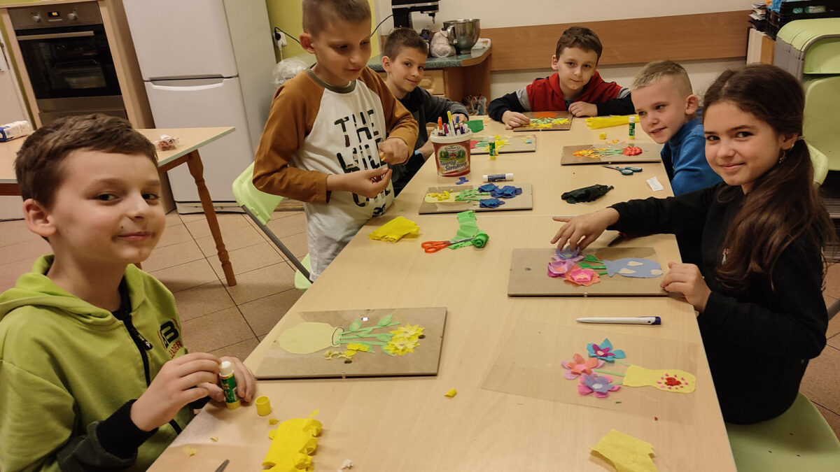 W drugiej połowie maja skupiliśmy się na robieniu niespodzianek dla naszych Mam. Robiliśmy z bibuły kompozycje kwiatowe. Staraliśmy się, aby kwiaty wykonywane inną techniką były w formie 3D.