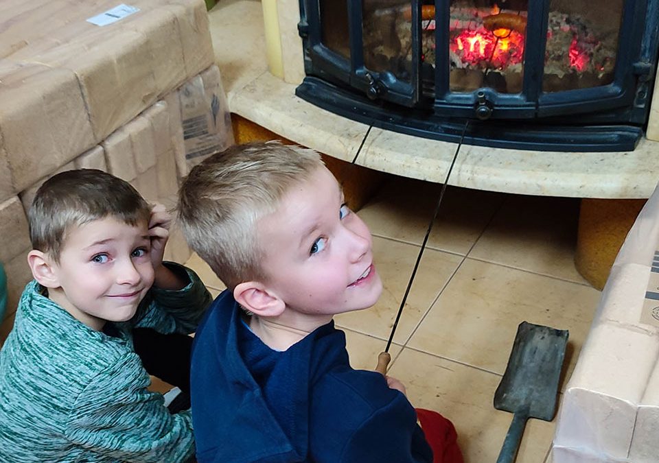 Innym sposobem na ciepłe spędzenie czasu, w porze chłodnej i deszczowej było grillowanie w kominku świetlicowym. Najmilsze momenty przy takim spotkaniu, to smakowanie upieczonych jabłek i kiełbasek.